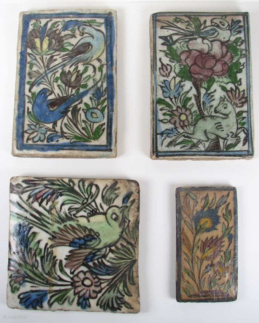 ETH059 Lot of 4 Persian Ceramic Tiles, Largest: 5.75" x 5 ...