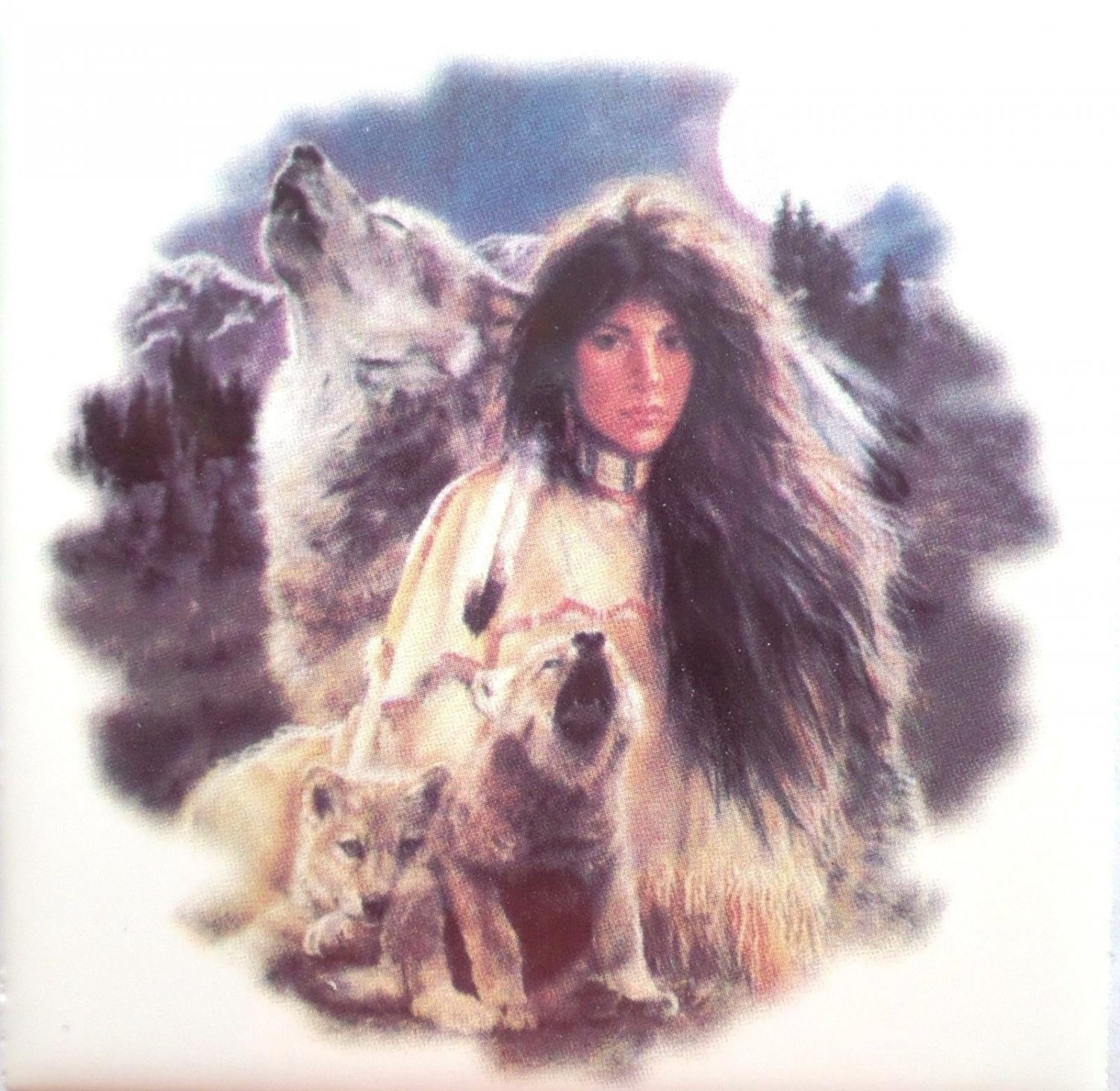 Girl and Wolf Ceramic Tile Accent 4.25" x 4.25" Kiln fired ...