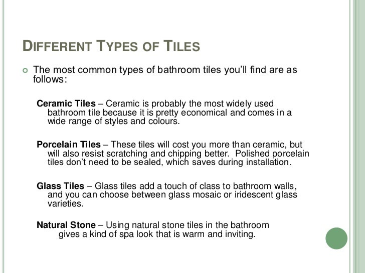 The classification of ceramic tiles based on. Ceramic tiles are thin slabs manufactured through the process of heating and cooling clays, silica Also Read: Basic Things to Know About Ceramic Tiles. Soft soled footwear or bare feet areas, bathrooms and bedrooms without direct.